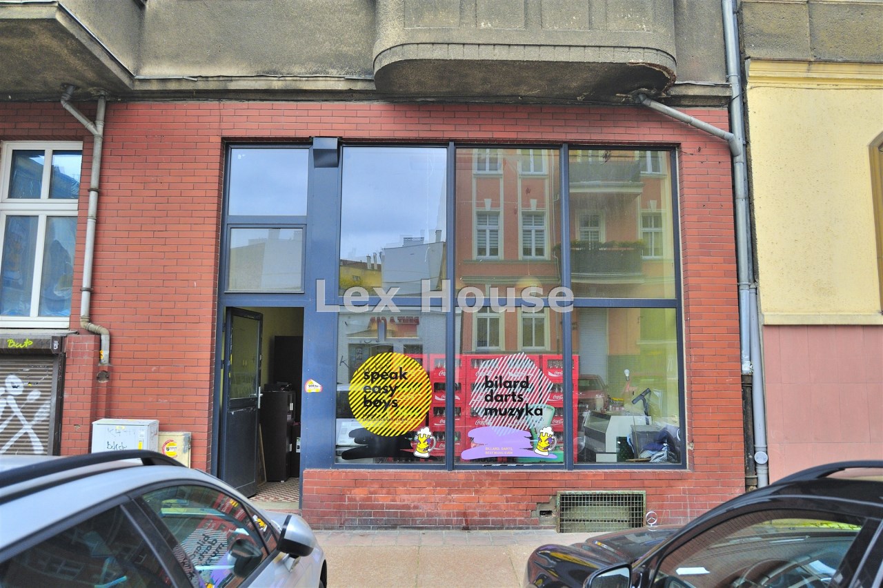 Lokal ma dwa wejścia z ulicy, jedno do sklepu z dużymi witrynami i drugie do pubu znajdującego się w piwnicy. Lokal posiada salę sprzedażowa o powierzchni 40m2 wejście od ulicy.