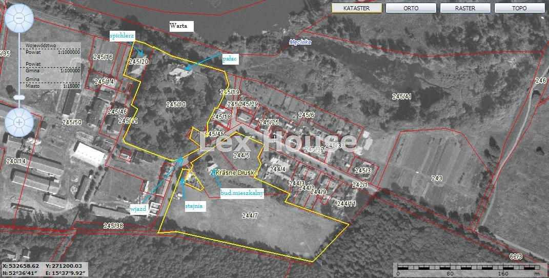 Nieruchomość znajduje się w małej wiosce Krasne Dłusko położonej tuż nad Wartą w otoczeniu sosnowych lasów, po drugiej stronie Warty – Puszcza Notecka.