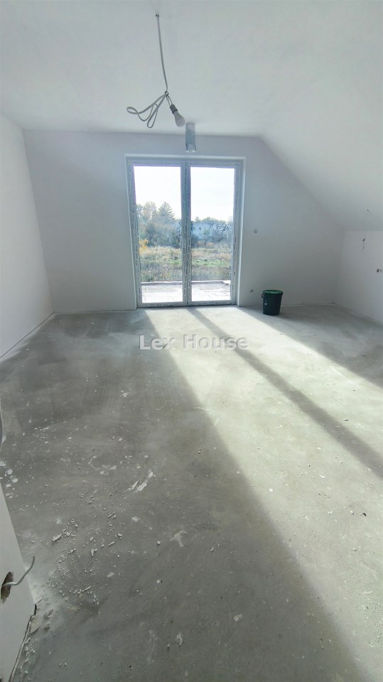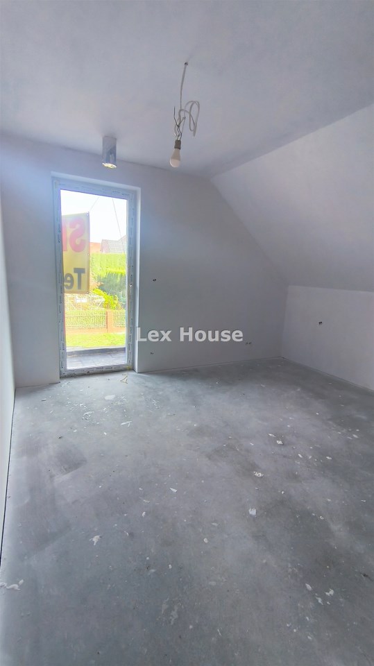 Na sprzedaż nowoczesny dom jednorodzinny o powierzchni użytkowej 200 m², położony w spokojnej okolicy domów jednorodzinnych. Nieruchomość wyróżnia się funkcjonalnym układem pomieszczeń oraz wysokim standardem wykonania. Na parterze znajduje się wiatrołap, korytarz, toaleta, pokój gościnny, przestronny salon z aneksem kuchennym oraz pomieszczenie techniczne. Z salonu prowadzi wyjście na duży taras z widokiem na malowniczą łąkę i bezpośrednim dostępem do ogrodu. Na piętrze zaplanowano komfortową sypialnię główną z garderobą i wyjściem na taras, dwie mniejsze sypialnie z balkonem, przestronny pokój kąpielowy oraz pomieszczenie gospodarcze. Dom posiada garaż dwustanowiskowy w bryle budynku, ogrzewanie podłogowe oraz system rekuperacji, co zapewnia wysoki komfort użytkowania i energooszczędność. Budynek jest w stanie deweloperskim, w trakcie wykończenia, co daje możliwość aranżacji wnętrz według własnych potrzeb. Działka o powierzchni 400 m² z dodatkową dzierżawą 200 m² stanowi idealną przestrzeń do wypoczynku i rekreacji. W odległości około 500 metrów znajdują się sklepy, placówki medyczne, szkoły oraz przedszkola, co sprawia, że lokalizacja jest wyjątkowo wygodna dla rodzin z dziećmi. To idealna propozycja dla osób poszukujących komfortowego i nowoczesnego domu w otoczeniu zieleni, a jednocześnie z szybkim dostępem do miejskiej infrastruktury.