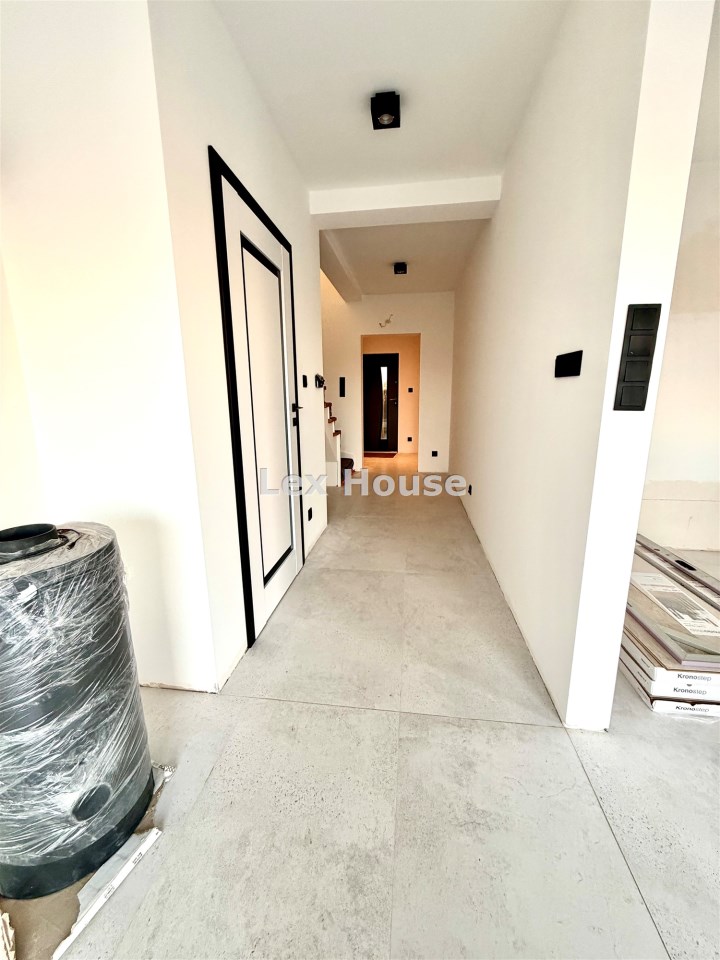 Na sprzedaż dom w zabudowie bliźniaczej. Całkowita powierzchnia budynku wynosi 156,24 m2, z czego powierzchnia użytkowa to 115,85 m2, w tym 17,03 m2 garażu. Działka, na której leży budynek, ma powierzchnię 318,25 m2.