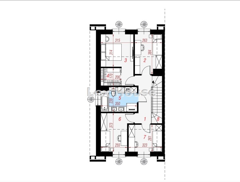 Piętro : 4 sypialnie ( podłogi panele), łazienka z kabina i wanną ( glazura i terakota)