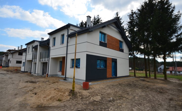 Nowy dom w zabudowie bliźniaczej w stanie deweloperskim z 2024r na nowym osiedlu w miejscowości Pilchowo gm. Police