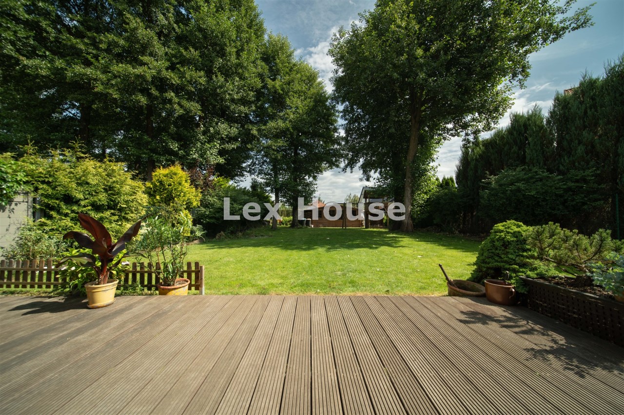w ogrodzie drewniany domek ok. 20 m² oraz mały domek blaszany,