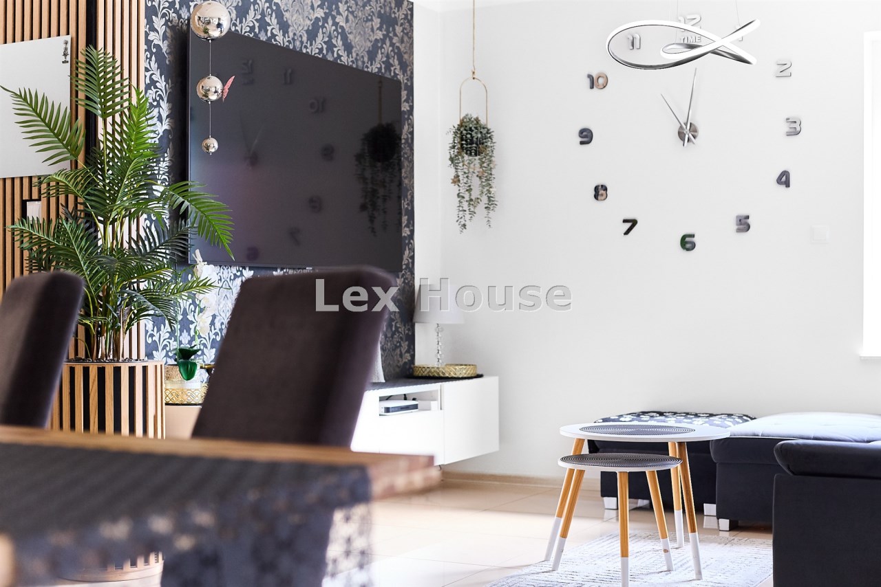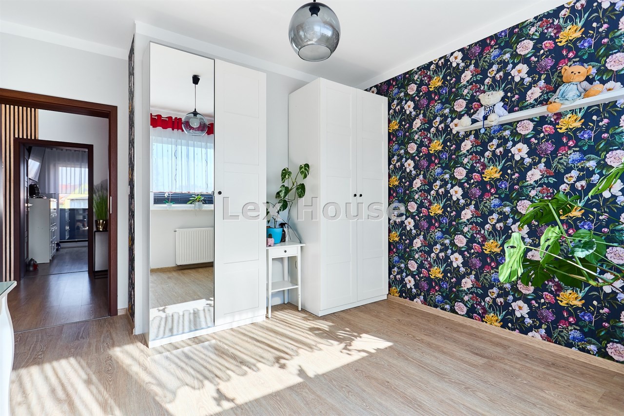 Do dyspozycji właścicieli jest również zagospodarowany ogród o powierzchni około 170 m² z automatycznym systemem nawadniania oraz dwoma domkami narzędziowymi.