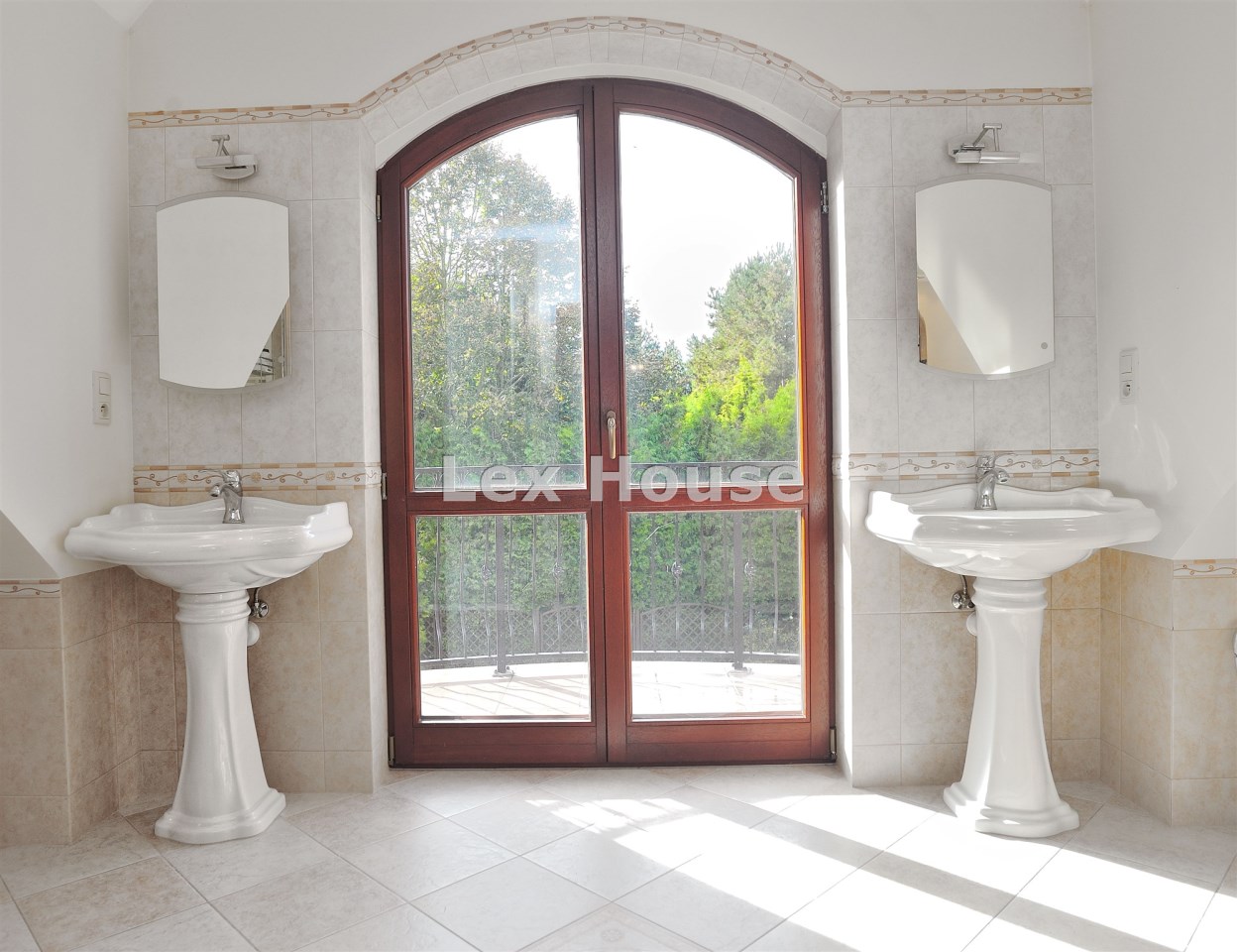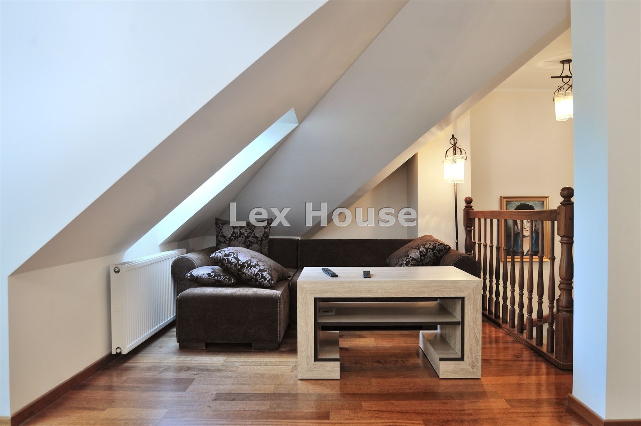 Na piętrze : dwa pokoje w tym jeden z osobną garderobą , salon łazienkowy.