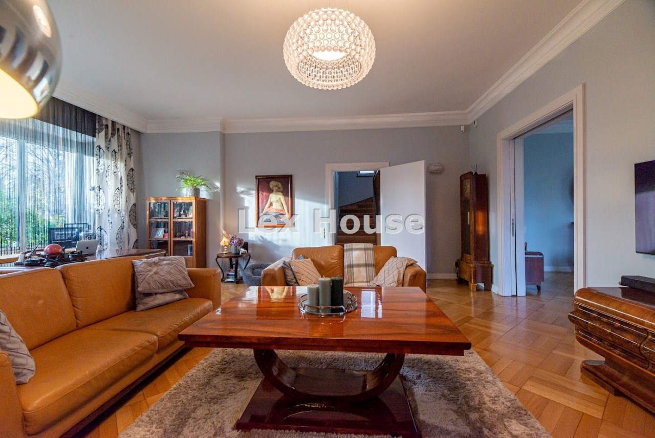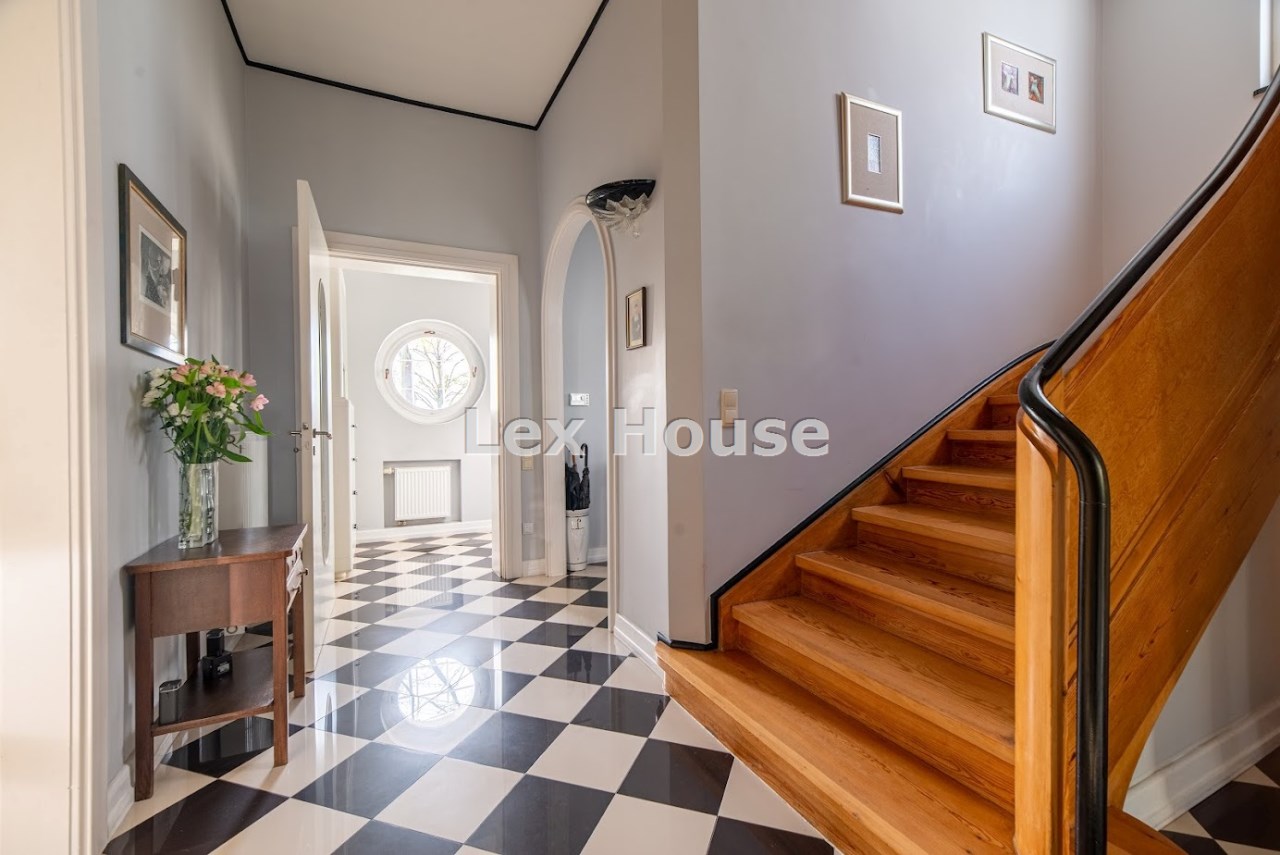 Ta poniemiecka willa w stylu Art Deco o powierzchni użytkowej 297 m² (powierzchnia całkowita 447 m²) z garażem o powierzchni 35 m² została kompleksowo odrestaurowana z wykorzystaniem materiałów najwyższej jakości, z zachowaniem oryginalnego charakteru i ponadczasowej elegancji.