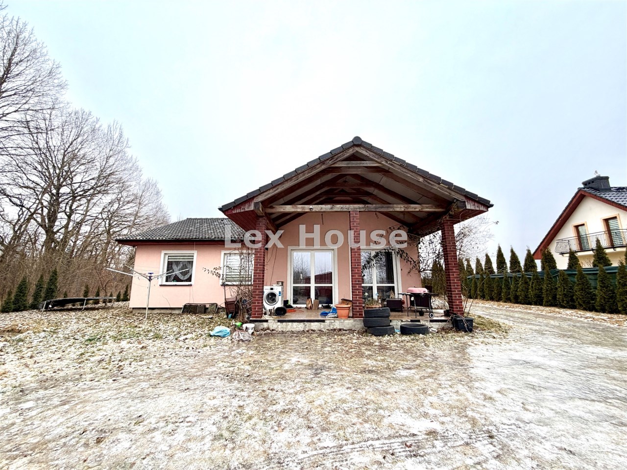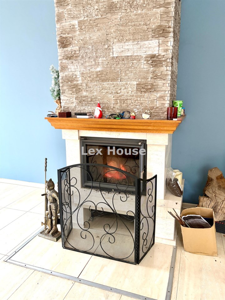 Dom wybudowany według projektu Alex 2, ocieplony styropianem, dach pokryty dachówką cementową.Ogrzewanie: kominek + piec centralnego ogrzewania – ekonomiczne i klimatyczne rozwiązanie na zimowe wieczory Działka 3200 m² – duża, zagospodarowana: