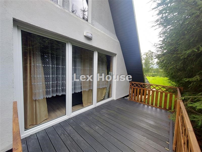 Parter: przestronny salon z kominkiem , kuchnia, łazienka oraz wydzielony apartament z osobnym wejściem od strony ogrodu.