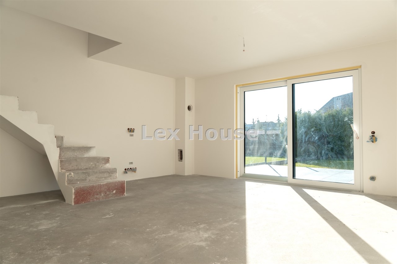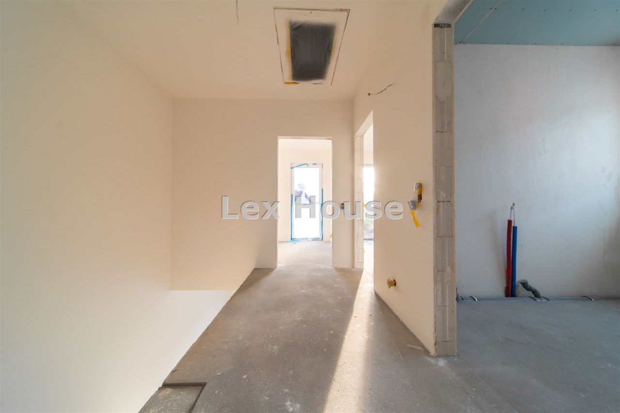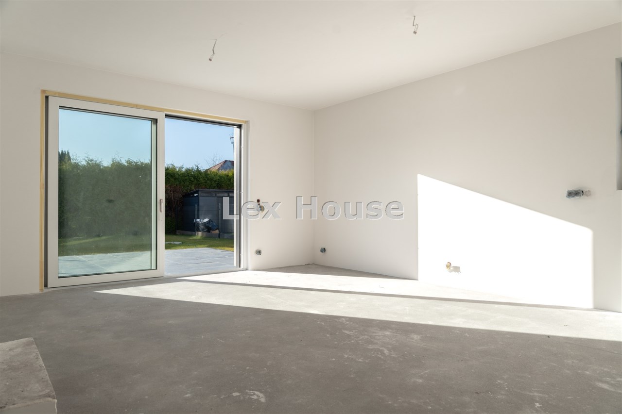 Parter : salon z aneksem kuchennym oraz wyjściem na taras i ogród od strony południowej, pokój idealny na biuro lub pokój gościnny, wiatrołap, łazienka oraz pomieszczenie gospodarcze.