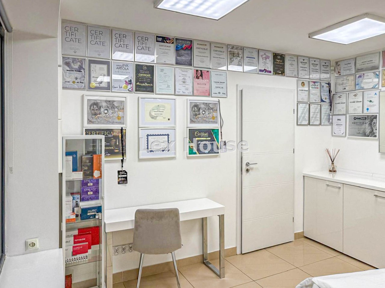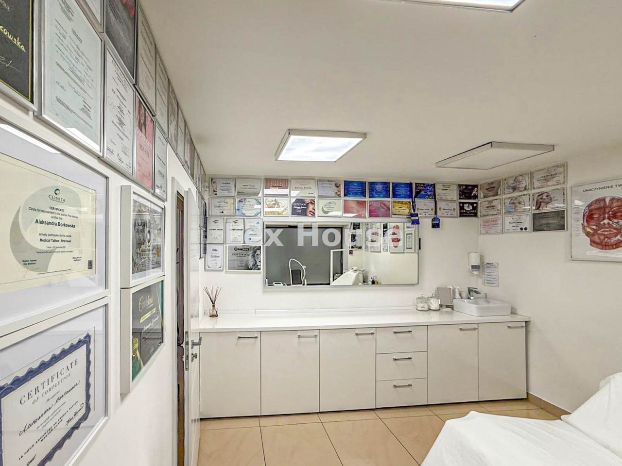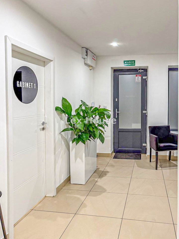 Lokal składa się z recepcji, dwóch gabinetów do których doprowadzona jest woda i kanalizacja, zaplecza socjalnego oraz łazienki. Lokal w bardzo dobrym standardzie, po remoncie generalnym sprzed kilku lat. Na podłodze terakota, ściany gładzone, malowane, nowa stolarka drzwiowa wewnętrzna, nowe witryny, nowe instalacje: wodno-kanalizacyjna, grzewcza i elektryczna.