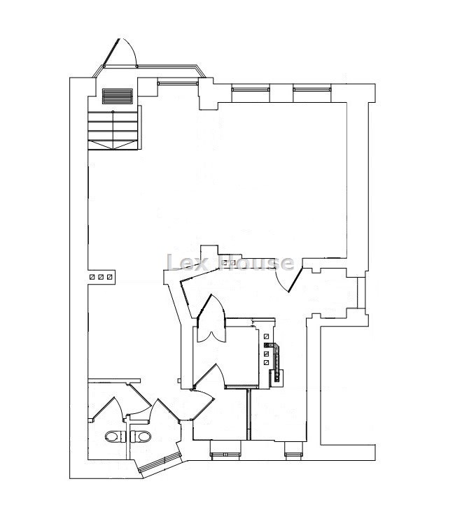 Rozkład pomieszczeń: duża sala główna w kształcie litery L, zaplecze kuchenne - kuchnia i zmywak, zaplecze socjalne, dwa pomieszczenia wc -