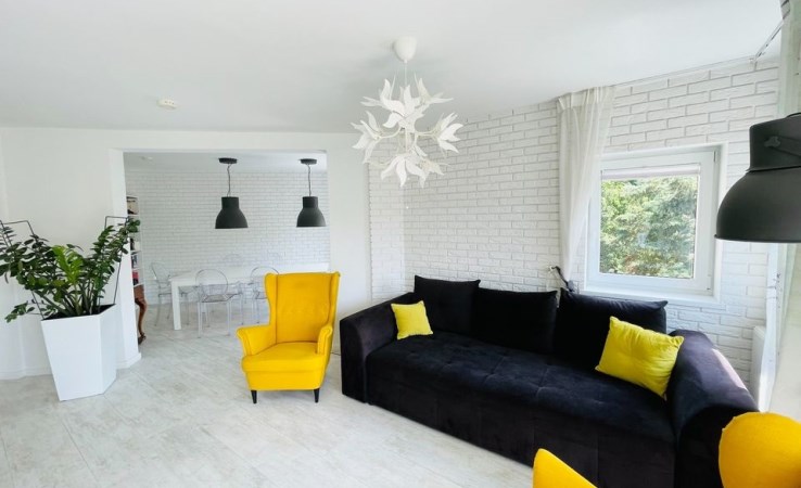 Układ funkcjonalno-przestrzenny mieszkania pozwala na wydzielenie przestrzeni wraz z jedną z łazienek na oddzielne pomieszczenie niezależne, np. gabinet, bez ingerencji w strefę prywatną. Salon łączy się z kuchnią otwartą, w pełni wyposażoną, z lakierowanymi frontami - system szuflad z pełnym wysuwem (blum), górne otwierane na tip-on oraz dużą powierzchnia blatu roboczego, co jest dużym atutem. Część kuchenną od wypoczynkowej oddziela wyspa. Jest również możliwość i co najważniejsze miejsce, aby wydzielić miejsce na stół jadalniany. Dwie łazienki w mieszkaniu są rzadkością, zetem jest to kolejny z atutów, tym bardziej, że można korzystać zarówno z wanny, jak i kabiny prysznicowej. Większa łazienka posiada pralkę oraz suszarkę, co również stanowi wielki plus.