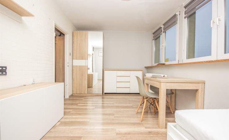 Mieszkanie składa się z pokoju, aneksu kuchennego zrobionego w holu, łazienki i oddzielnie WC.