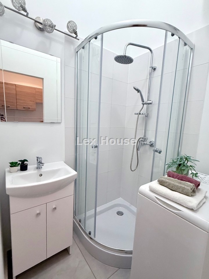 Łazienka wyposażona w kabinę natryskową, umywalkę, lustro, pralkę. W kuchni nowe szafki i sprzęt AGD. W cenie cale wyposażenie widoczne na zdjęciach.