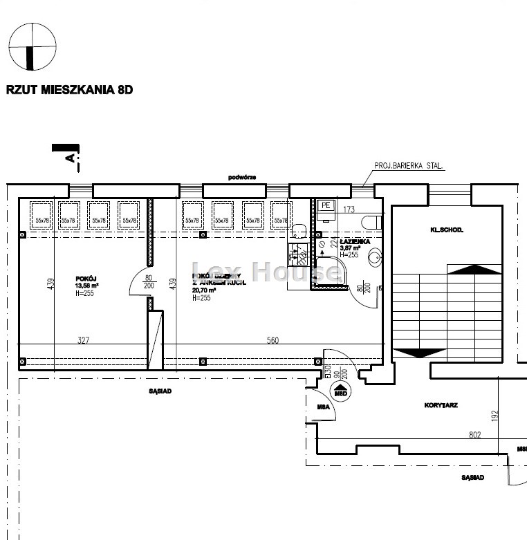 - pokój dzienny z aneksem kuchennym 20,70 m2,