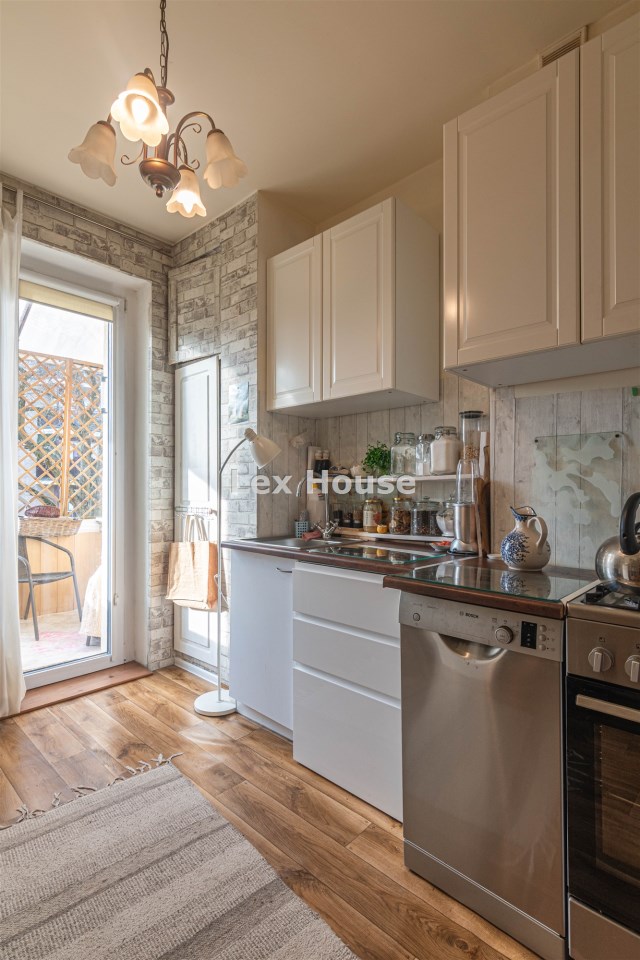 Mieszkanie znajduje się na 2 piętrze trzykondygnacyjnej kamienicy. W pokojach i korytarzu podłogi wyłożone są dębowym parkietem (do odświeżenia). Kuchnia i łazienka przygotowane do własnej aranżacji. Kuchnia o powierzchni 9 m2, bardzo widna z wyjściem na przestronny balkon. Duży pokój (19m2) i kuchnia usytuowane są od strony północno zachodniej, mniejszy pokój (16m2) i łazienka (ok.4,5m2) od południowego wschodu. Mieszkanie jest ciepłe i w większej części słoneczne, co przekłada się na zwroty za ogrzewanie. Wymienione okna PCV oraz instalacja elektryczna, kanalizacyjna i gazowa. W budynku nowe piony wodne i kanalizacyjne.