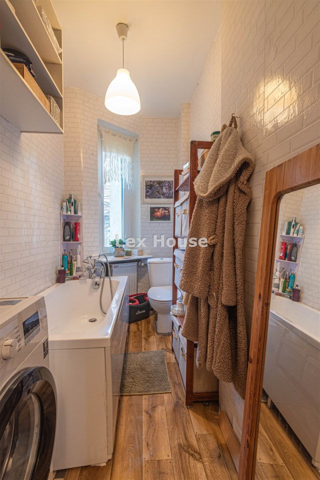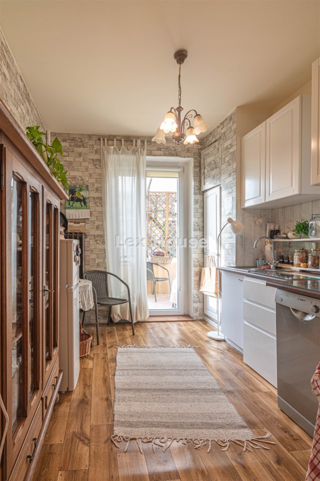 Mieszkanie ogrzewane jest z sieci miejskiej (SEC), ciepła woda - bojler gazowy.