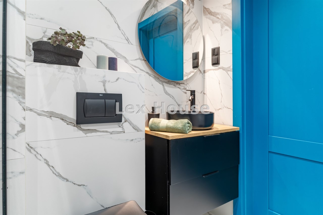 Wnętrze jest w pełni umeblowane i wyposażone w niezbędne sprzęty AGD i RTV, takie jak zmywarka, lodówka, piekarnik, płyta grzewcza, pochłaniacz, pralka oraz telewizor. Dzięki temu nowy właściciel może wprowadzić się od razu, zabierając jedynie osobiste rzeczy. Mieszkanie może również stanowić atrakcyjną opcję inwestycyjną, gotową do wynajmu bez dodatkowych nakładów.