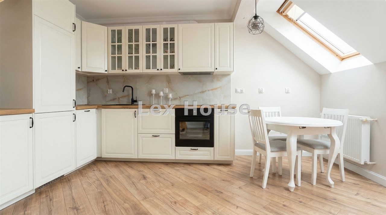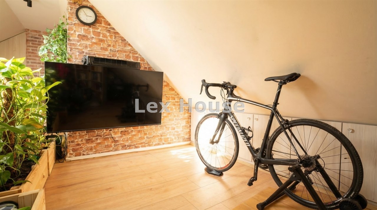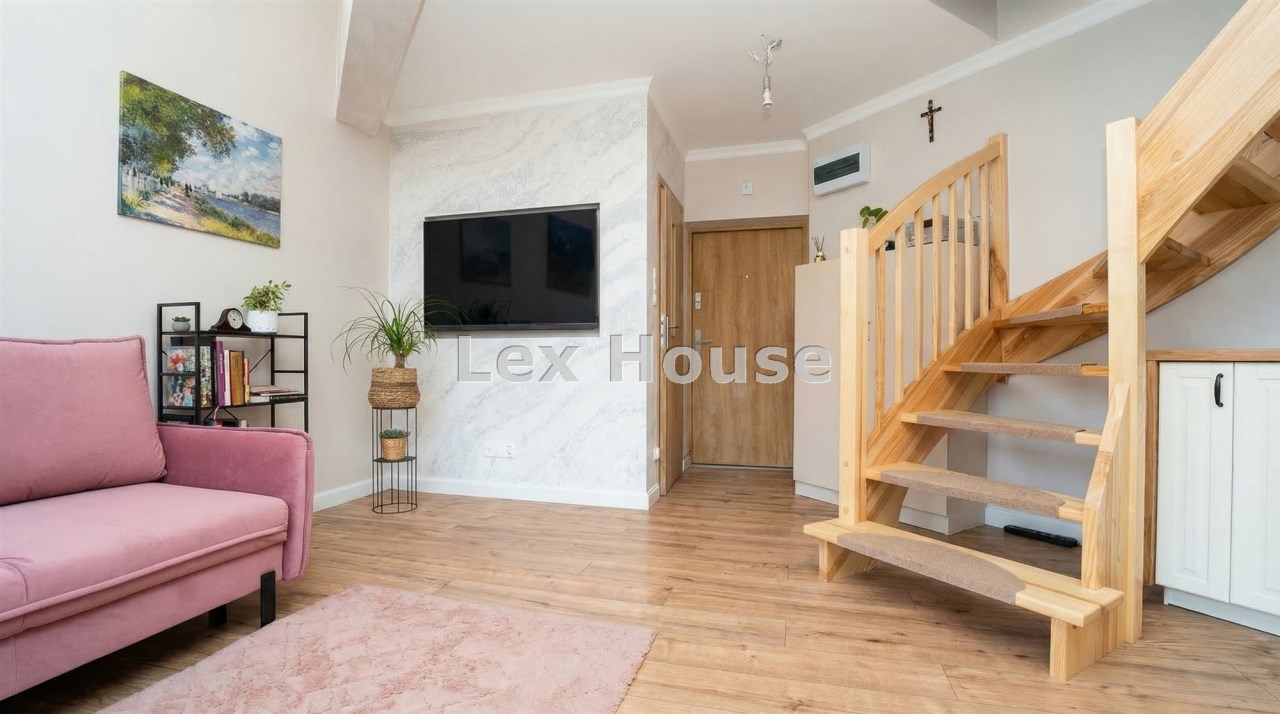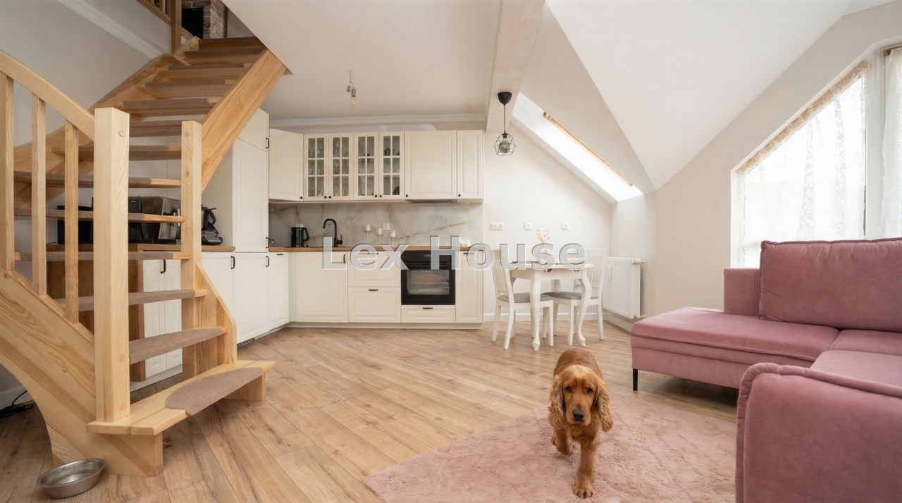 Mieszkanie w 2025 roku przeszło generalny remont, łącznie z wymianą instalacji. Na obu poziomach na podłogach nowe wysokogatunkowe panele. Kuchnia w nowoczesnej zabudowie pod wymiar wraz z nowym sprzętem AGD (zmywarka, indukcja, piekarnik). Z salonu wyjście na spory balkon z ładnym widokiem. Zostały również zrobione nowe drewniane, szerokie schody. Na II poziomie stałe zabudowy, obecnie podzielony jest na część wypoczynkową oraz strefę sypialnianą.