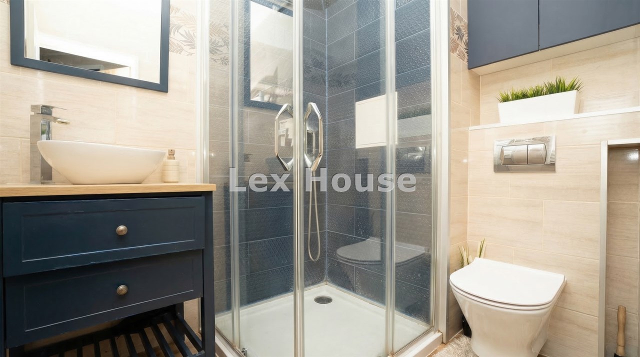Na I poziomie łazienka z prysznicem w nowoczesnym stylu.