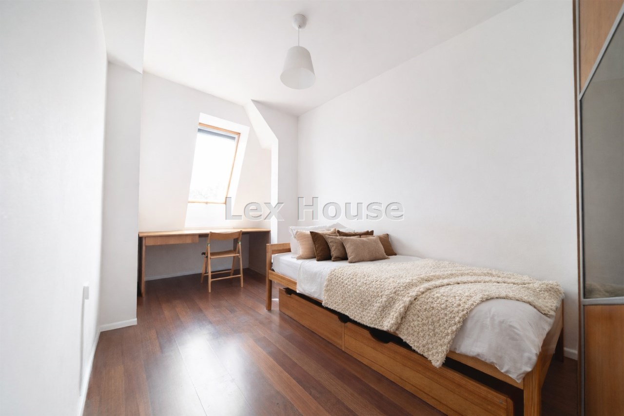 Nieinwazyjne skosy, prawidłowo wykonana adaptacja poddasza w postaci izolacji dachu. W kamienicy wymieniony dach, piony wodno-kanalizacyjne.