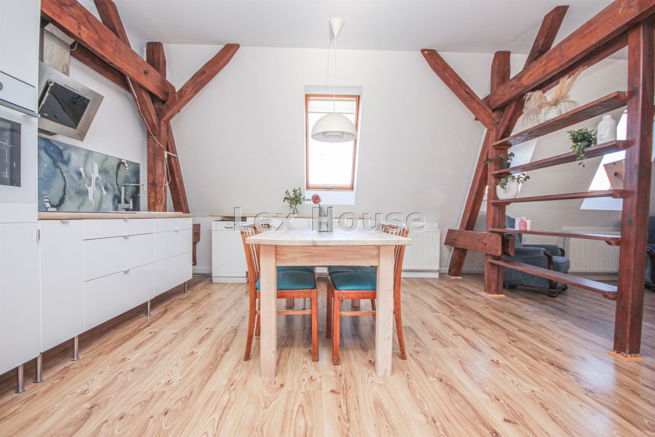 Mieszkanie jest adaptacja poddasza ( przeprowadzona około 2000 roku ) w skład której wchodzą: