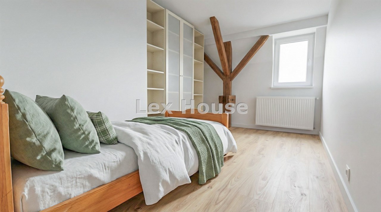 - duża sypialnia z podwójnym łóżkiem i miejscem na szafę