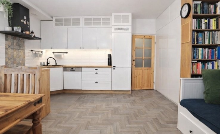 Ściany w jasnych przyjemnych kolorach. Dwa balkony od strony południowej.