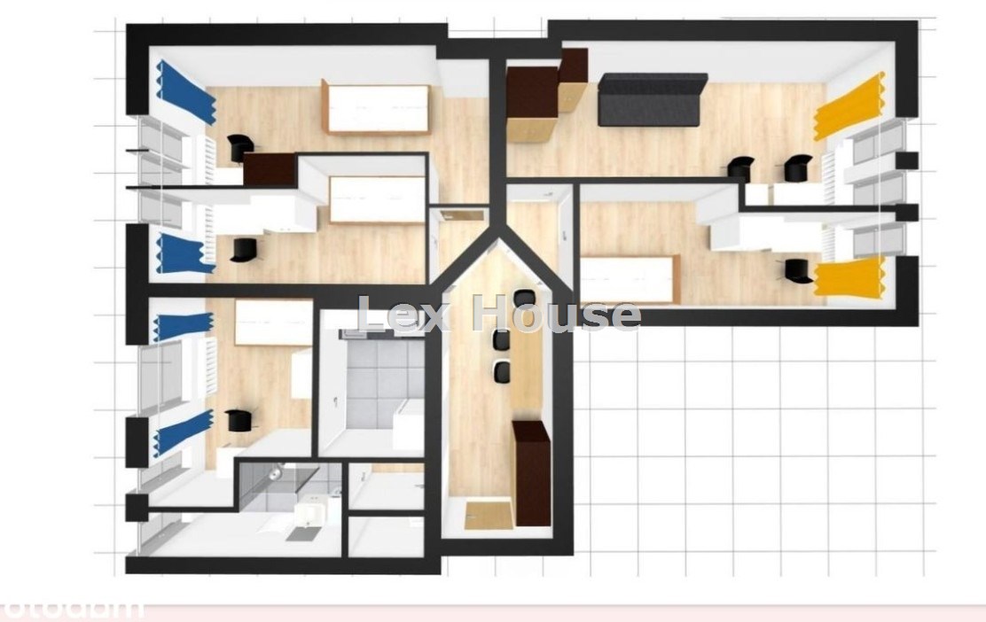 Obecnie mieszkanie jest wynajmowane przez 5–6 osób (największy pokój został przystosowany dla dwóch najemców).
