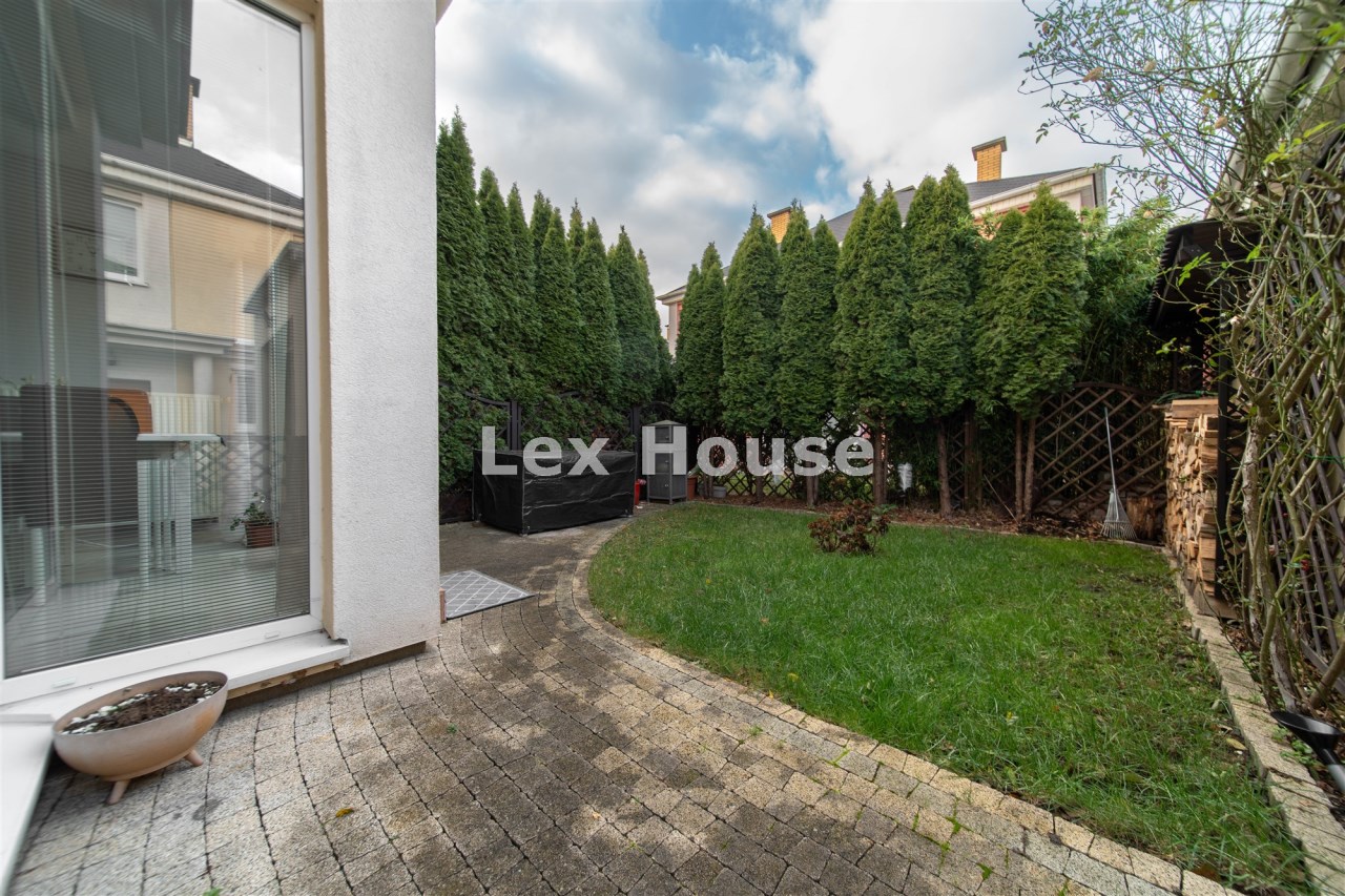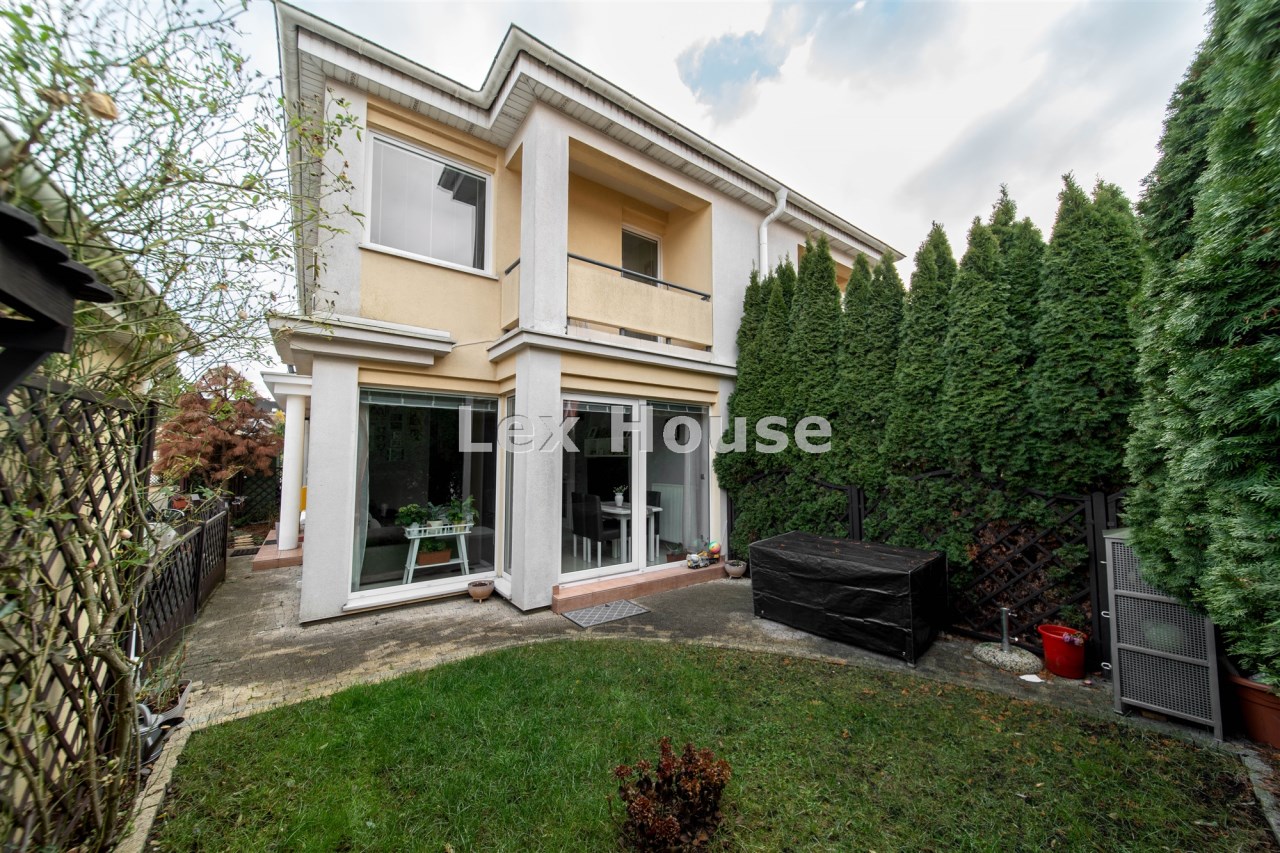 Na sprzedaż dwupoziomowe mieszkanie z ogródkiem w czterorodzinnym szeregowcu na zamkniętym strzeżonym osiedlu Bursztynowe w Warzymicach.