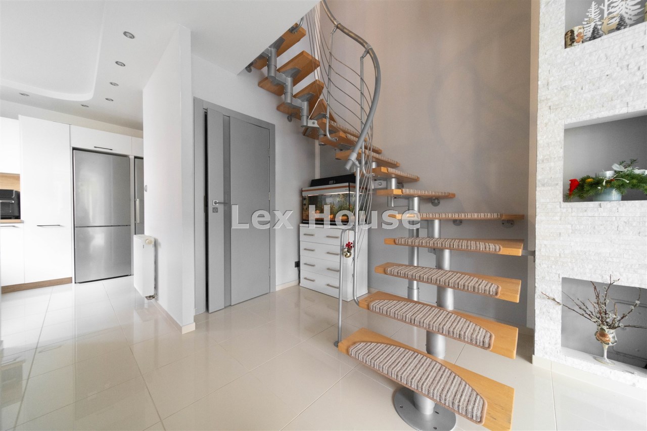 Na sprzedaż dwupoziomowe mieszkanie z ogródkiem w czterorodzinnym szeregowcu na zamkniętym strzeżonym osiedlu Bursztynowe w Warzymicach. Lokal narożny z samodzielnym wejściem do mieszkania.