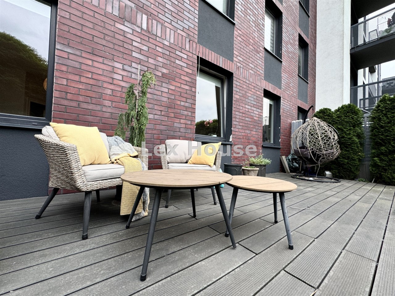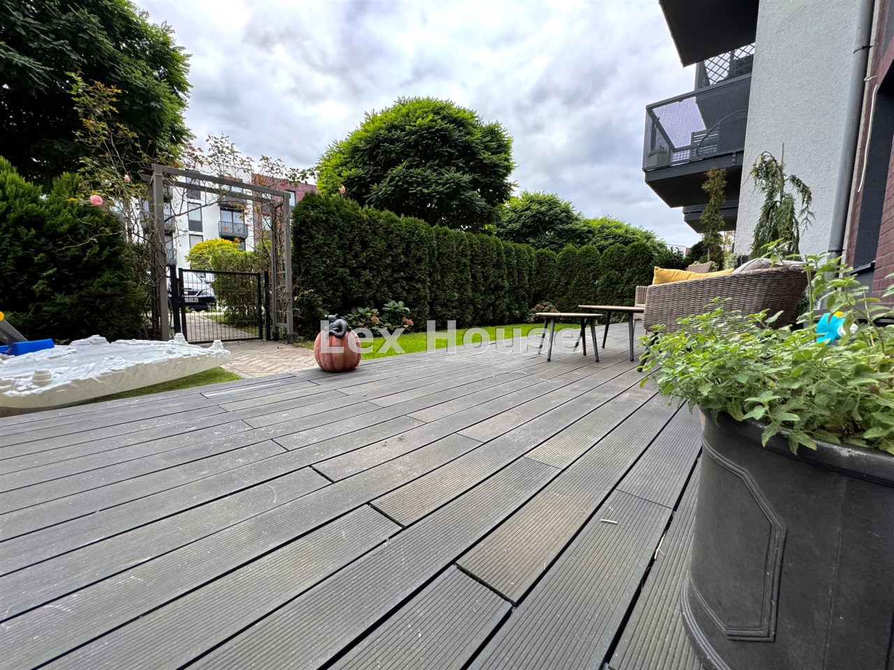 Zagospodarowany ogródek, z wejściem z zewnątrz ,zasadzeniami i tarasem.
