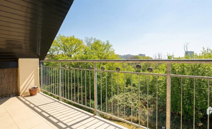 Na pierwszym poziomie znajduje się przestronny salon, otwarta kuchnia z nowoczesnym sprzętem, łazienka, oraz pokój z dużą garderobą. Parter mieszkania jest wyłożony bielonym drewnem dębowym, a ściany ozdobione są efektownym tynkiem strukturalnym. Dwa balkony, z salonu i kuchni, dodają przestrzeni i światła. Na drugim poziomie znajduje się otwarta przestrzeń z antresolą, pełniącą rolę biura, garderoby oraz sypialni. Klimatyzacja na piętrze zapewnia komfort. Całe mieszkanie zostało starannie zaprojektowane w stylu loftowym, z dużą ilością zieleni w postaci roślin domowych.