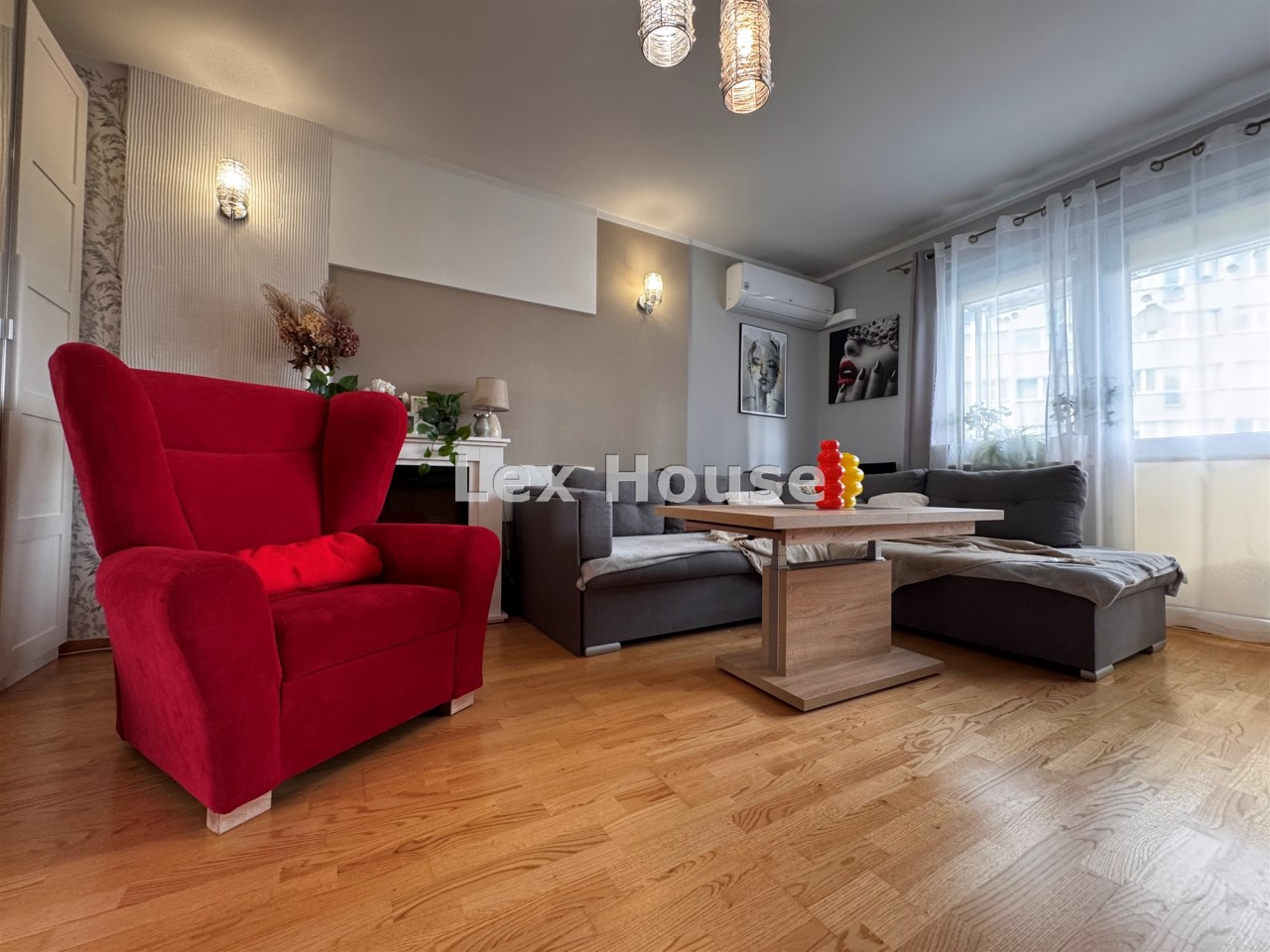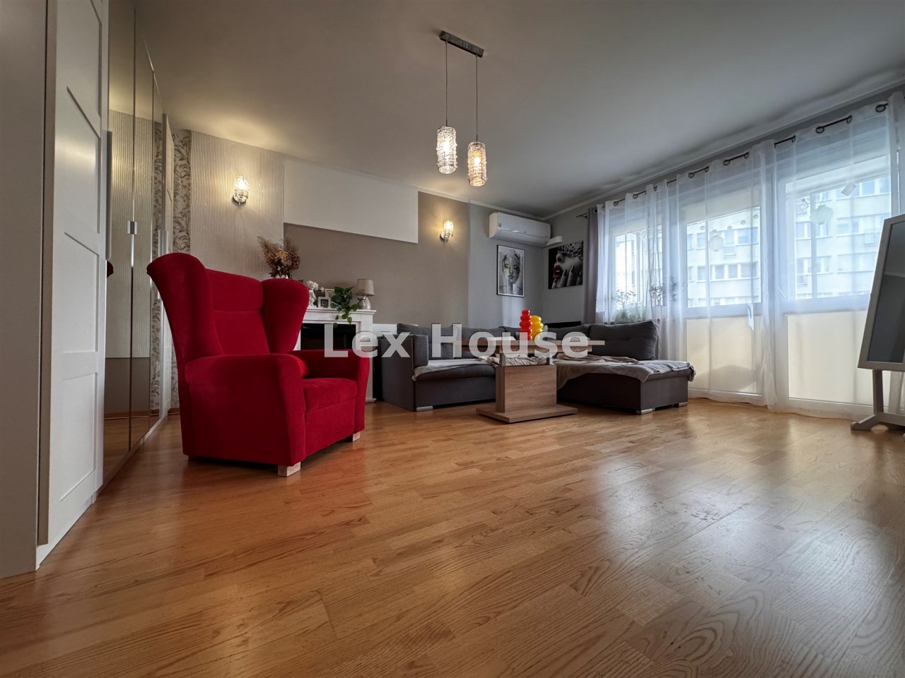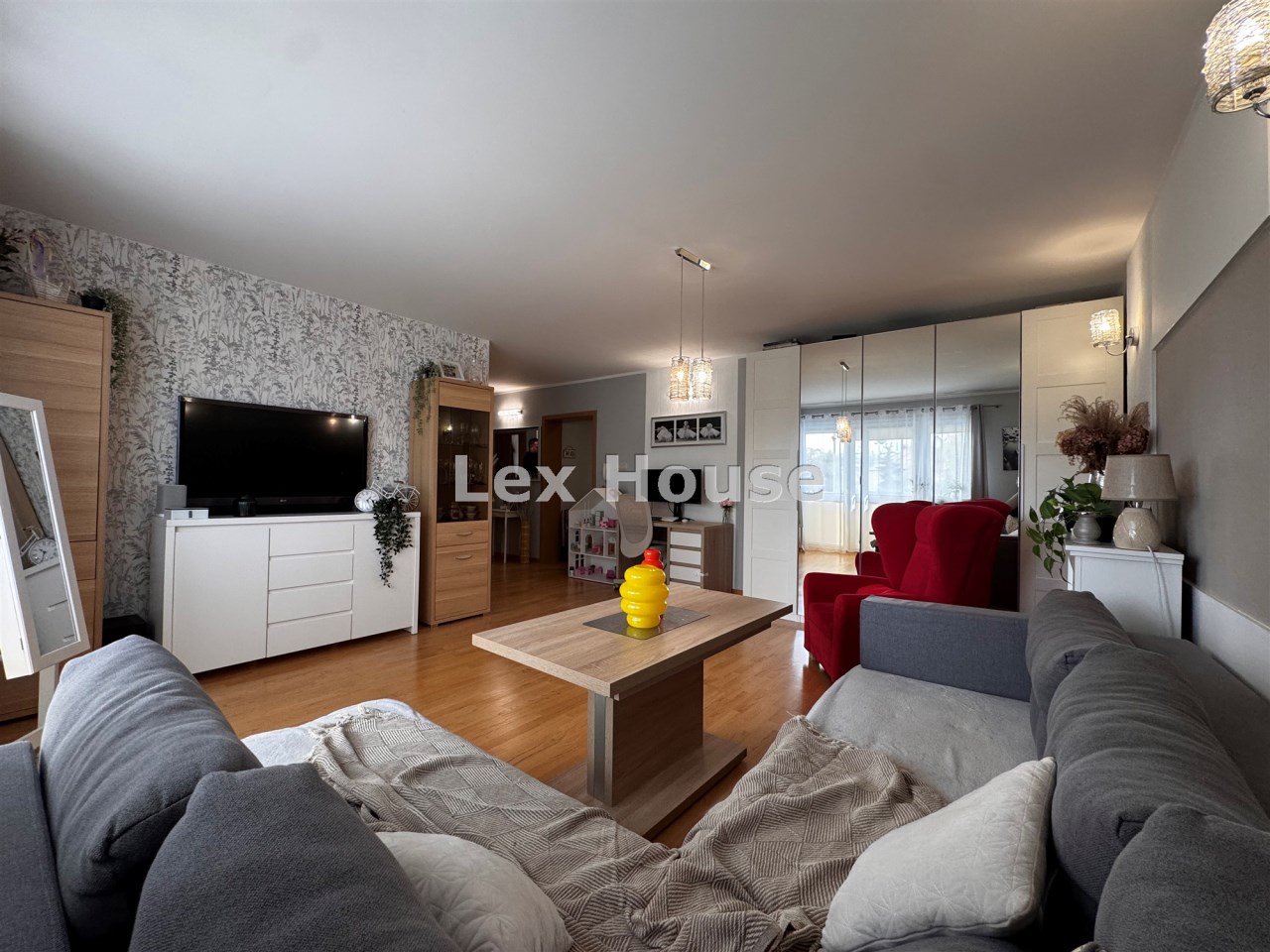 salon z wyjściem na bardzo duży, zabudowany balkon – idealne miejsce na relaks,