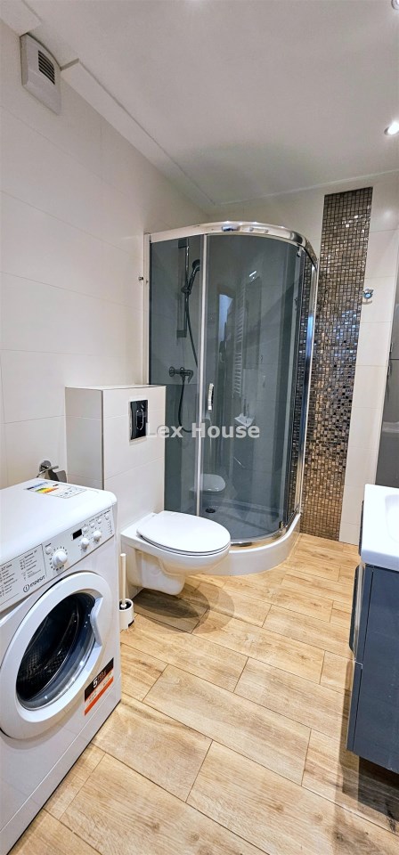 Wyposażenie łazienki | lustro, pralka, prysznic, WC |