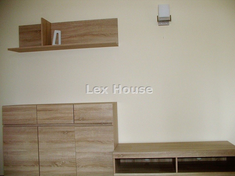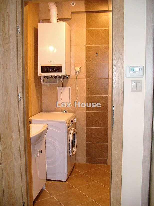 Łazienka z kabiną natryskową sedesem, umywalką, pralką. Kuchnia wyposażona w zabudowę na wymiar i sprzęt AGD w zabudowie. W pokoju kanapa rozkładana i szafki. W przedpokoju szafa w zabudowie. Drzwi antywłamaniowe, ogrzewanie gazowe z pieca dwuobiegowego. Podłogi są w całym mieszkaniu z terakoty.