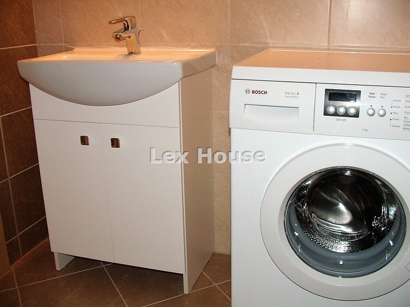 Wyposażenie łazienki | kabina natryskowa, lustro, pralka, umywalka, WC |