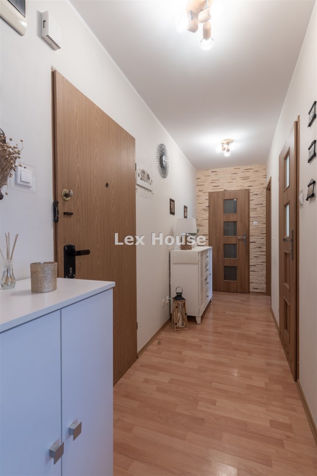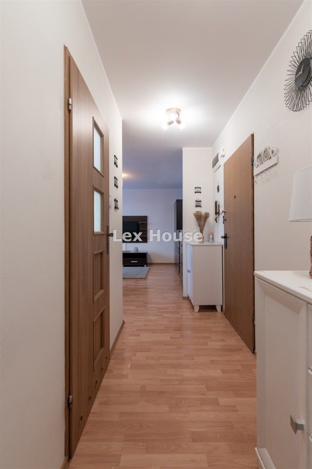 Mieszkanie położone na trzecim piętrze budynku, o północno zachodniej ekspozycji okien. Z balkonu rozpościera się piękny widok na zachodnią część miasta. Mieszkanie w bardzo dobrym standardzie, na podłodze panele, ściany gładzone, malowane. W łazience, z wanną i wc, ładna, jasna glazura i terakota. Pokoje w całości umeblowane i wyposażone. Kuchnia umeblowana i wyposażona w sprzęt AGD - płyta elektryczna, piekarnik elektryczny, lodówka, okap, kuchenka mikrofalowa. W łazience znajduje się pralka. Dodatkowo w mieszkaniu znajduje się duża garderoba. Ogrzewanie i ciepła woda z SEC - osobna umowa.