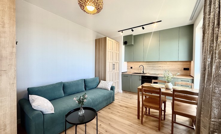 Na powierzchni 35m2 znajdziemy funkcjonalny salon z aneksem kuchennym i wyjściem na duży balkon, a także dużą sypialnię. W łazience kabina prysznicowa typu walk in oraz nowa pralka. Dodatkowo po całej długości mieszkania ciągnie się duży balkon, z którego rozpościera się widok w kierunku południowym. Jest to doskonałe miejsce do relaksu z jednoczesnym mieszkaniem blisko centrum miasta.